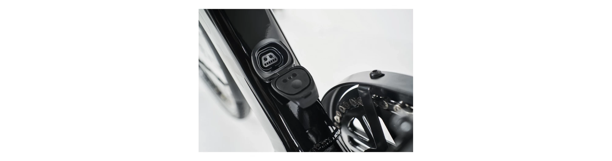- Le cadre en aluminium très léger dissimule le fait qu’il fonctionne à l’électricité. Tous les câbles sont déjà intégrés dans la potence pour garantir un look épuré et réduire les saletés.