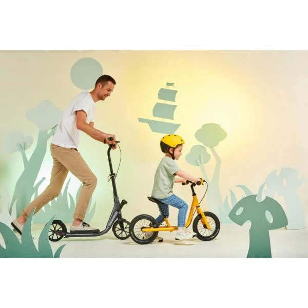 Le repose-pieds l’invite à décoller les pieds, et donc à jouer avec son équilibre. La position du repose-pieds le prépare à mettre ses pieds au bon endroit lorsqu’il passera au vélo.