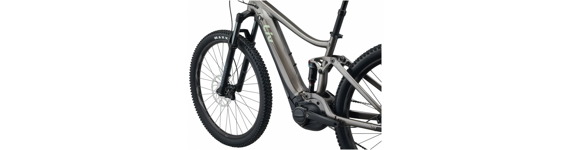 Le LIV Embolden E+ t’ouvre de toutes nouvelles dimensions en tout-terrain. Grâce au moteur SyncDrive Sport de Yamaha avec un couple de 70 Nm, ce VTTAE tout-suspendu fournit une assistance allant jusqu’à 350% de ton effort. Tu peux ainsi agrandir considérablement ton rayon d’action pour un même temps de trajet. Tu arrives plus vite en haut en ayant plus de force et de plaisir en descente et tu peux aussi te joindre sans hésitation à des groupes habituellement plus rapides. L’énergie nécessaire est fournie par l’EnergyPak intelligent de 625 Wh discrètement intégré dans le tube diagonal. L’unité de commande Giant RideControl Dash 2in1 avec écran couleur s’intègre parfaitement au design du guidon et l’application GIANT RideControl 2.0 te permet d’accéder à de nombreuses fonctions de navigation, de santé et de condition physique directement sur ton smartphone. Le cadre en aluminium ALUXX t’offre une dynamique de cadre fiable grâce à la suspension FlexPoint avec un débattement de 120 mm à l’arrière et de 130 mm à l’avant. Les cadres XS sont équipés de roues 27.5 pouces, les cadres S, M et L de roues 29 pouces pour un équilibre et une agilité adaptés à ta taille. Pour les longues randonnées ou le quotidien, l’Embolden E+ peut être facilement équipé de garde-boue et d’un porte-bagages.