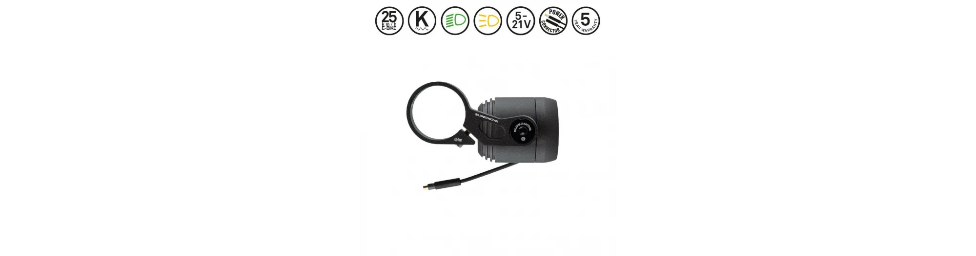 - 1 x phare de vélo électrique Supernova E3 V521s avec support HBM pour le montage sur le guidon