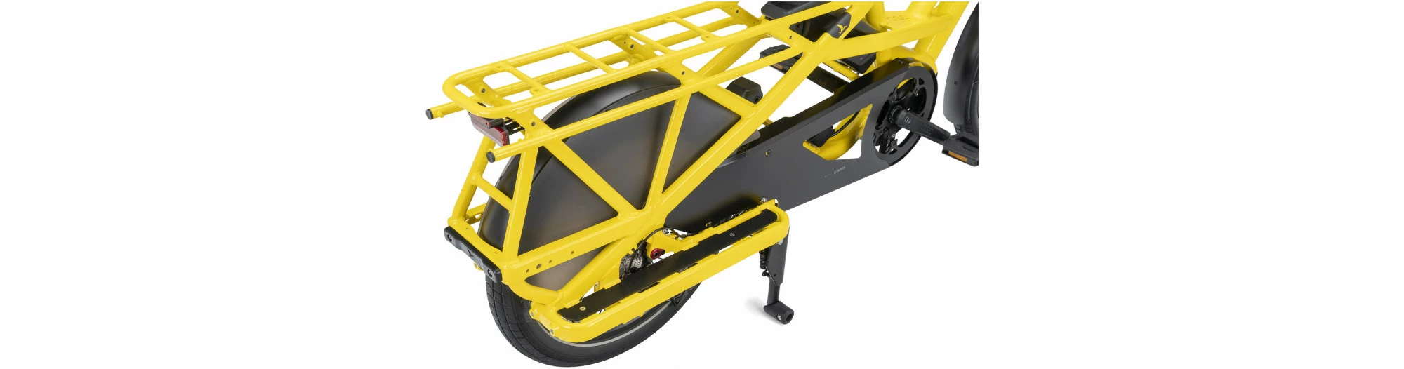 Porte-bagages arrière robuste intégré au cadre et ponts inférieurs intégrés.