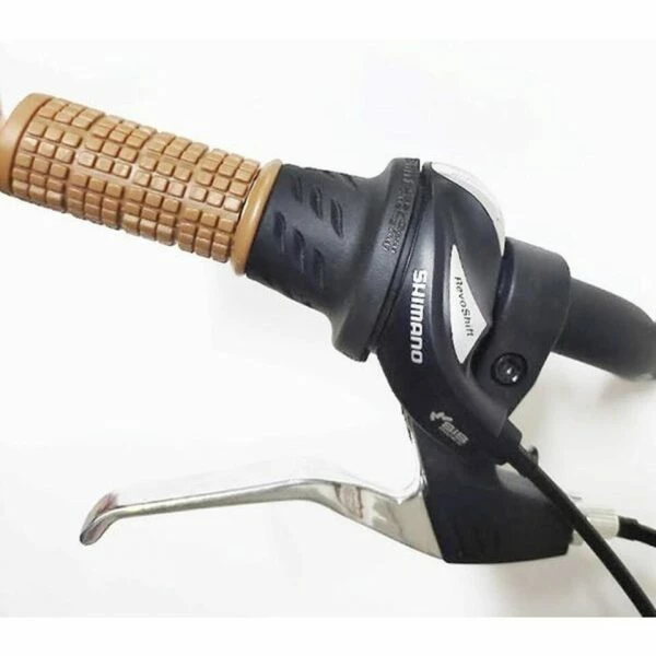 En ce qui concerne les vitesses, le système Shimano Revoshift, couplé avec le dérailleur Shimano à 6 vitesses vous donnera un contrôle facile et précis.